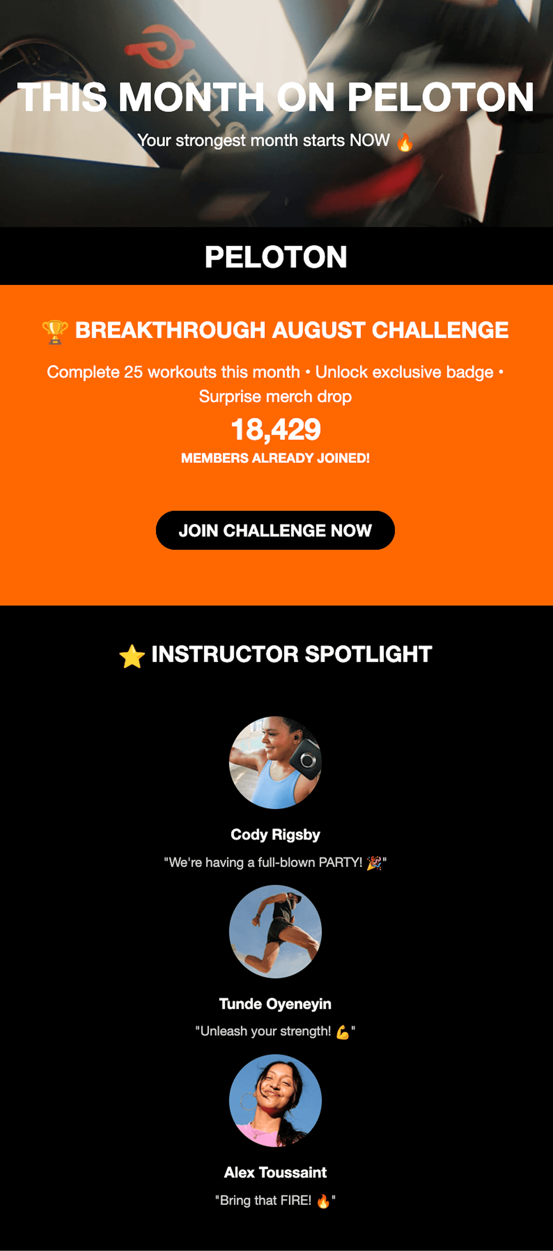 Peloton builds newsletters with just one prompt highlighting new challenges