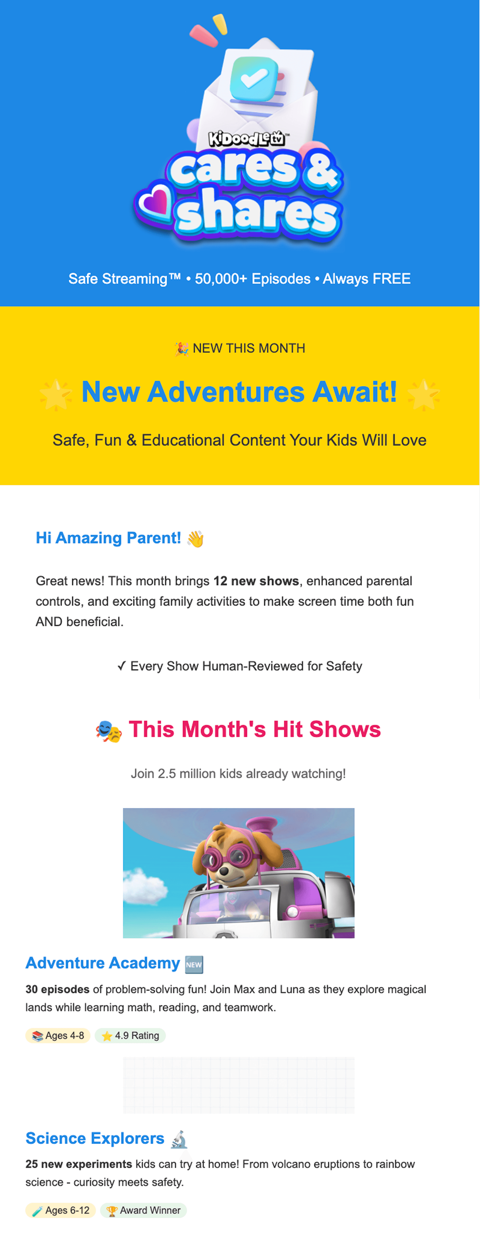 KiDoodleTV helps parents discover new shows and safety controls launched this month